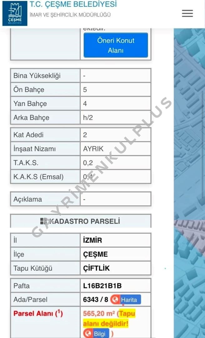 GAYRİMENKULPLUS / ÇİFTLİKKÖY DE 565 M2 KÖŞE PARSEL SATILIK ARSA İzmir, Çeşme, Çiftlik